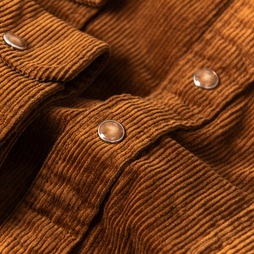 The New West Overshirt in Washed Copper Corduroy, a playful spin on classic autumnal layering piece. Cut in to a relaxed fit, this timeless take on new frontier design has all the Brixton hall marks woven in.